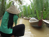 The last stop in Vietnam was the Mekong Delta. We travelled by boat to different sights. It was a bit touristy. We went to a bee keeping farms, where we could buy honey and a coconut candy factory where we could buy coconut candy...see a pattern here. Emmet got stung while holding one of the hives, but was very brave, he only cried a little. We went by boat all around the Mekong and out to several different islands. At one stage we took little paddle boats down a tiny canal surrounded by huge palm trees. The river and canals were pretty impressive. The landscape is very different from anywhere we had been before.